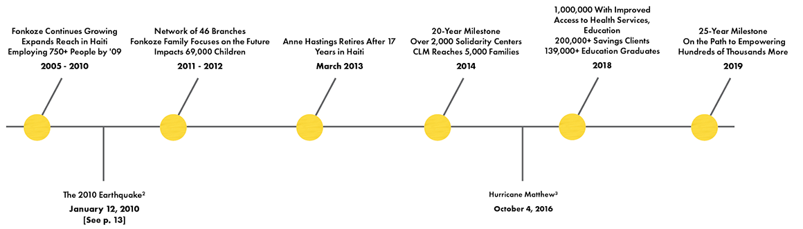Fueled by donations and investments from individuals and organizations across the U.S., both Fonkoze in Haiti and Fonkoze USA undertook tremendous growth from 1998-2000. By the end of 1998, Fonkoze opened its first 15 branches (thanks in part to grant received by the Doen Foundation in the Netherlands) and had 101 employees. In the same year, Fonkoze implemented development programs such as literacy and business skills training to accompany its empowering micro-lending services.